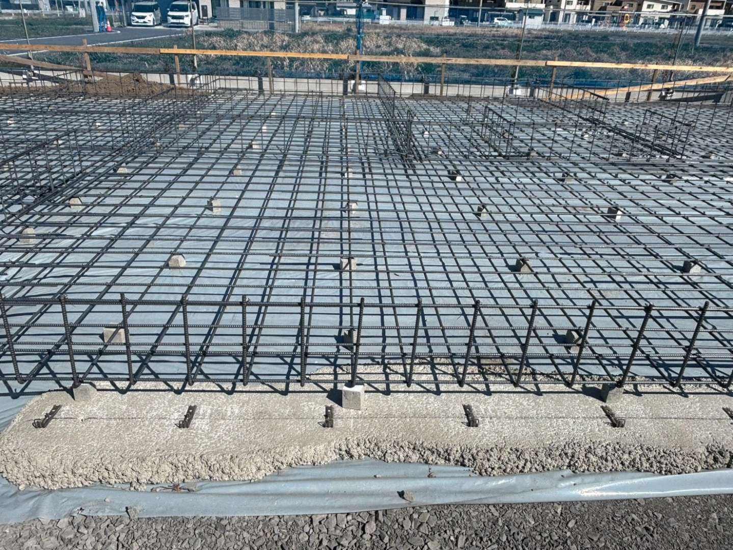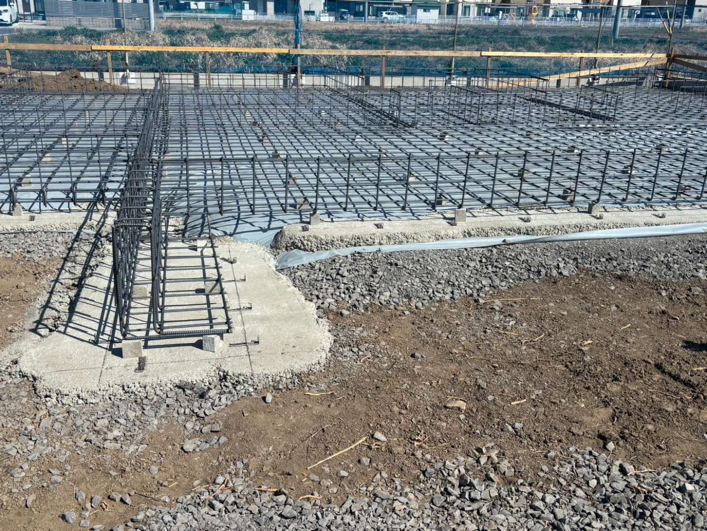 岐阜県内の戸建て住宅新築工事にて、鉄筋工事を担当いたしました。住宅の基礎は建物全体を支える重要な部分であり、鉄筋の配置や施工精度がそのまま耐震性や耐久性に直結します。